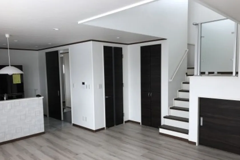 岩内町にて木造2階建て住宅を新築いたしました。 階段には吹き抜けを採用し、2階からの自然光を取り入れています。